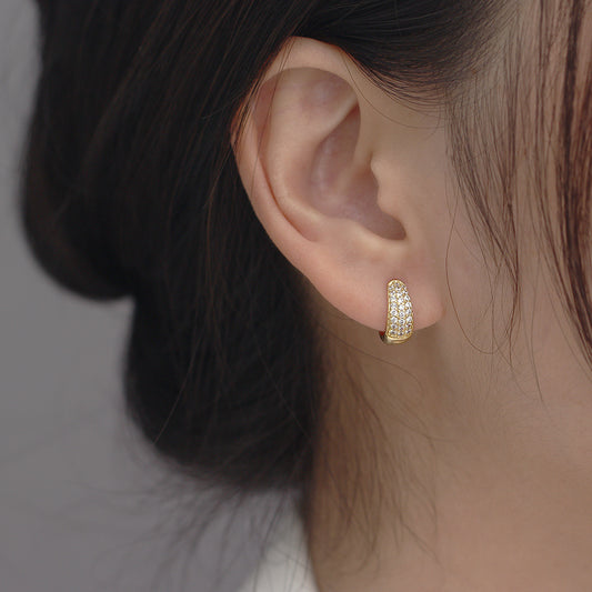 Gold Wide Crystal Huggies With Cubic Zirconia