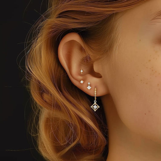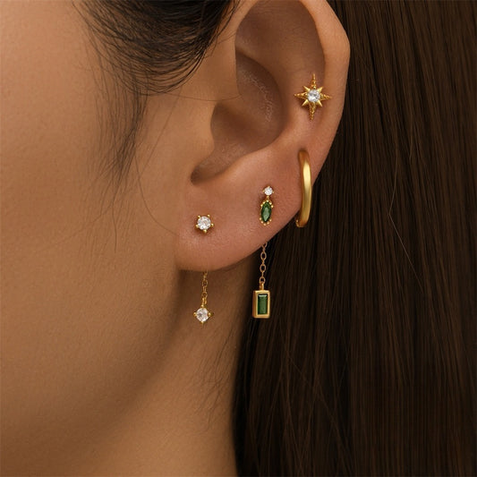 Gold Square Trio Gem Cubic Zirconia Huggie
