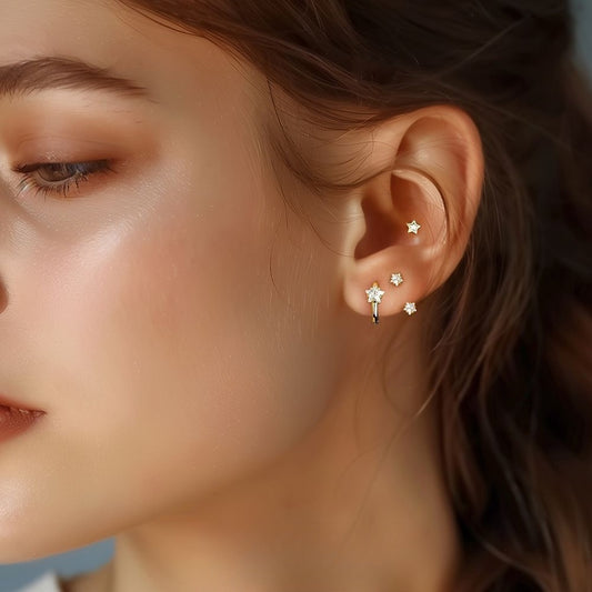 Gold Drop Star Stud With Arrow Drop Clear Cubic Zirconia