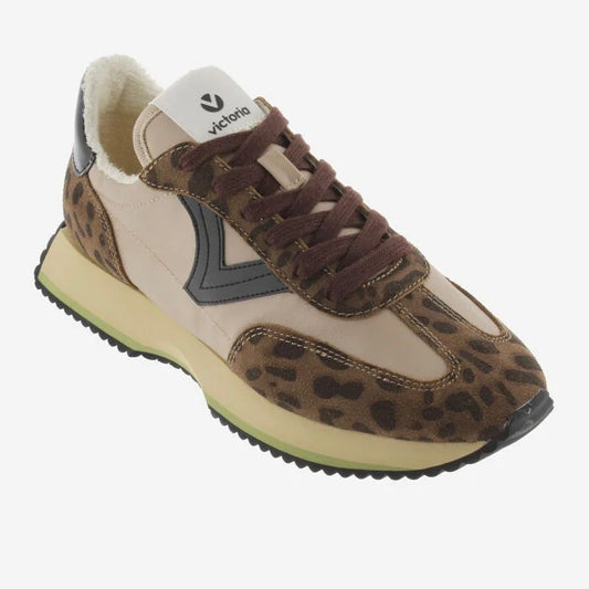Victoria Cosmos Animal Print Nylon & Split Leather Trainers