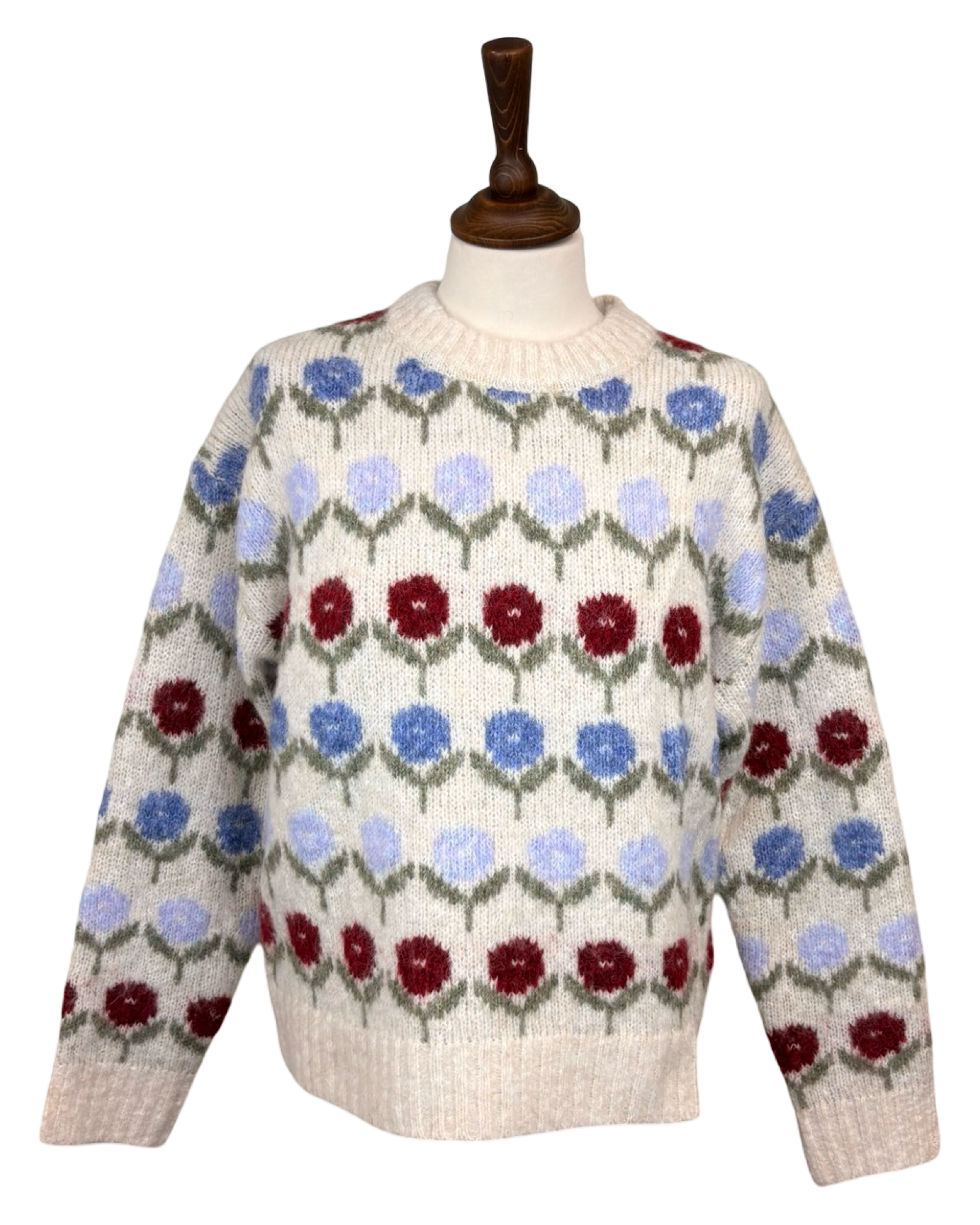 Flower pattern round neck jumper