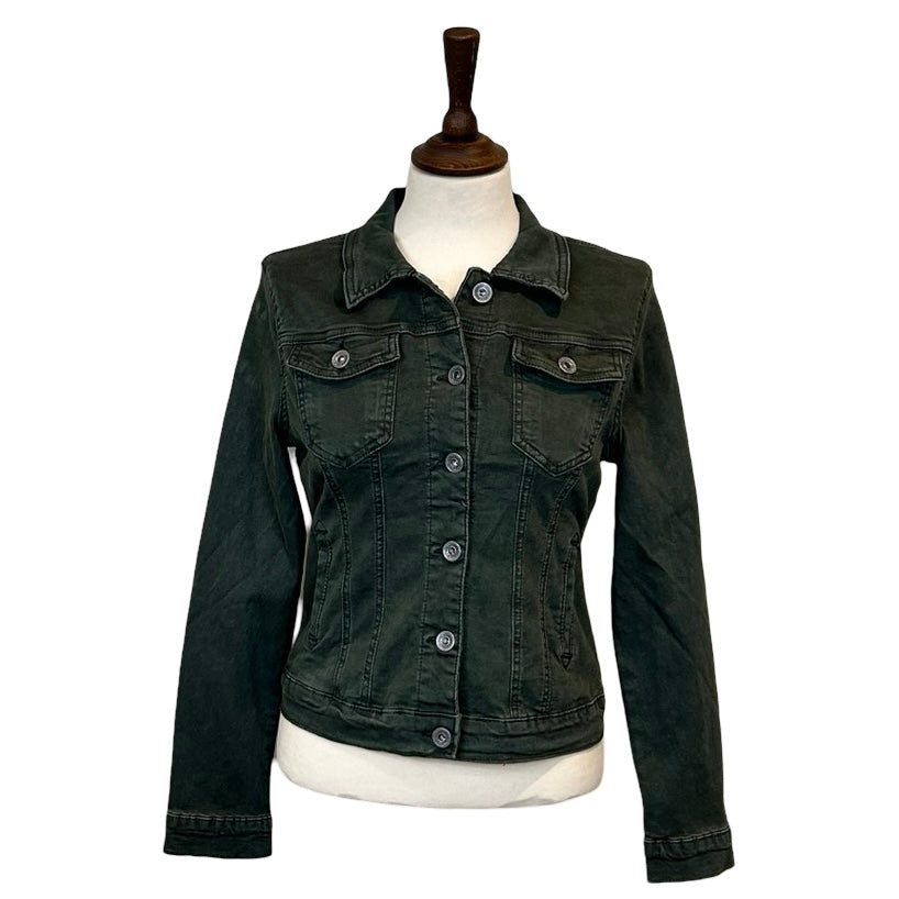Denim jacket with a six button fastening, button cuffs, two buttoned pouch pockets and two hand warmer pockets