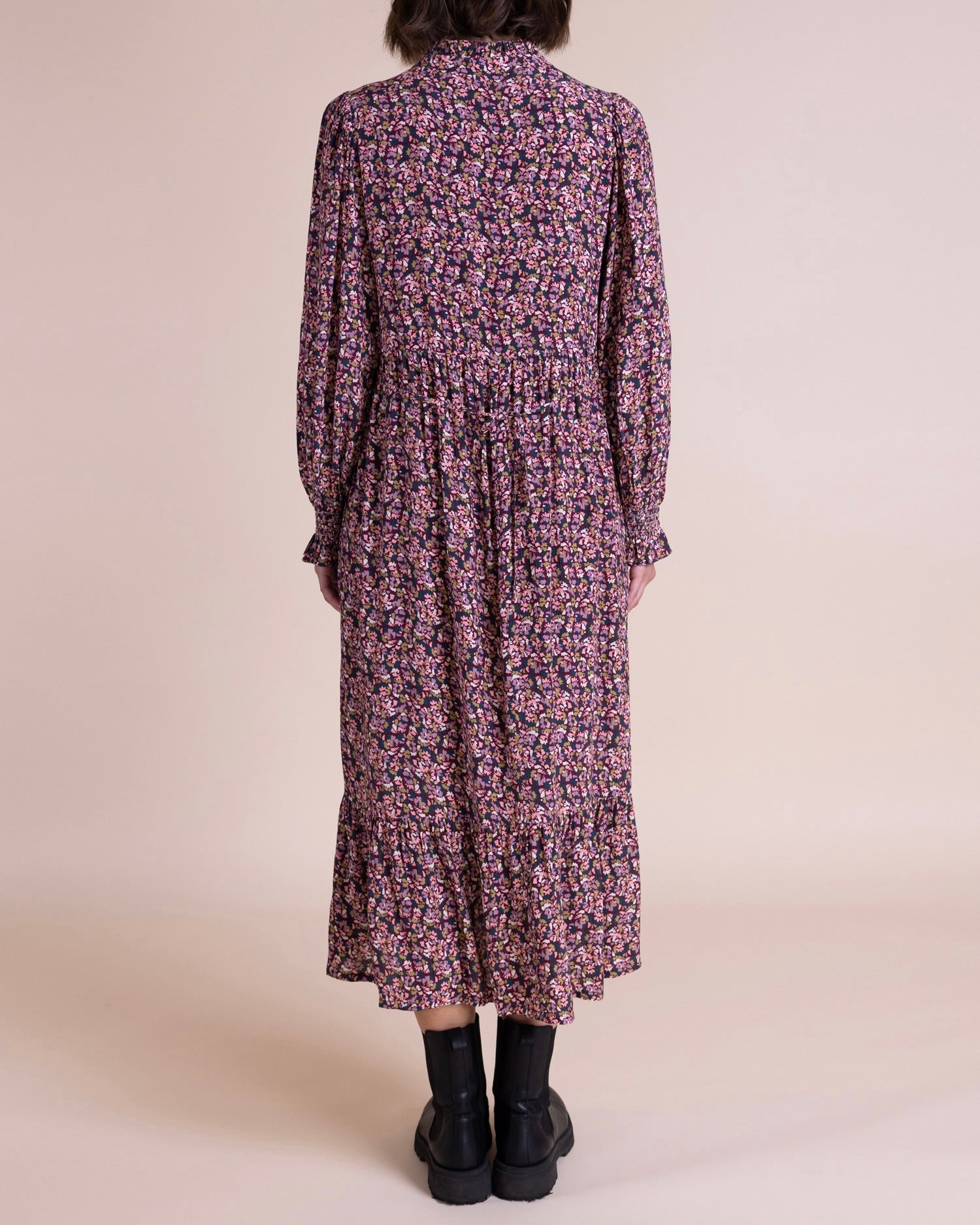 Gorgeous viscose dress with tie front, frill collar and elasticated sleeves.